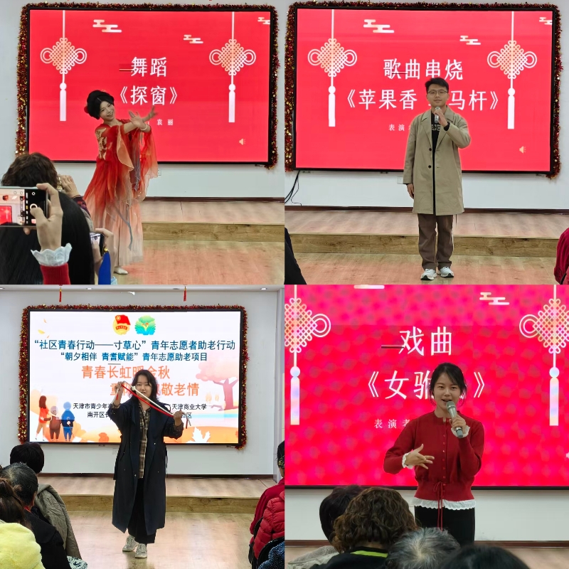 2025年10月22日,在重阳佳节来临之际,校团委组织师生走进南开区建华里社区,开展以“青春长虹暖金秋,重阳欢叙敬老情”为主题的敬老慰问活动。同学们以青春热忱践行孝道文化,弘扬中华民族尊老、敬老、爱老的传统美德,为社区带去浓浓的秋日温情。