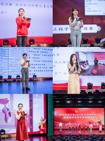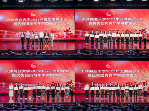 大会在团歌中拉开帷幕。校团委书记王樱洁宣读2025年学校共青团表彰决定,号召广大团员青年坚定理想信念,勇担时代重任,在中国式现代化新征程上贡献天商青年的力量。与会领导和嘉宾为获奖集体和个人颁奖。五名优秀团员青年分别从思想引领、学业科研、创新创业、志愿服务、校园文化建设等方面分享他们的青春奋斗故事,激励同学们不负韶华、勇往直前。